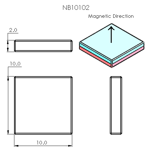 View full details10mm L x 10mm W x 2mm H block Grade N52 Ni-Cu-Ni triple coated Approx. 3.86 lb. / 1.75 kg pull force Magnetized through 2mm H Surface Gauss approx...