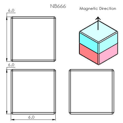 View full details6mm cube Grade N52 Ni-Cu-Ni triple coated Approx 4.75 lb / 2.16 Kg pull force Magnetized through 6mm H Surface Gauss approx. 6480 G