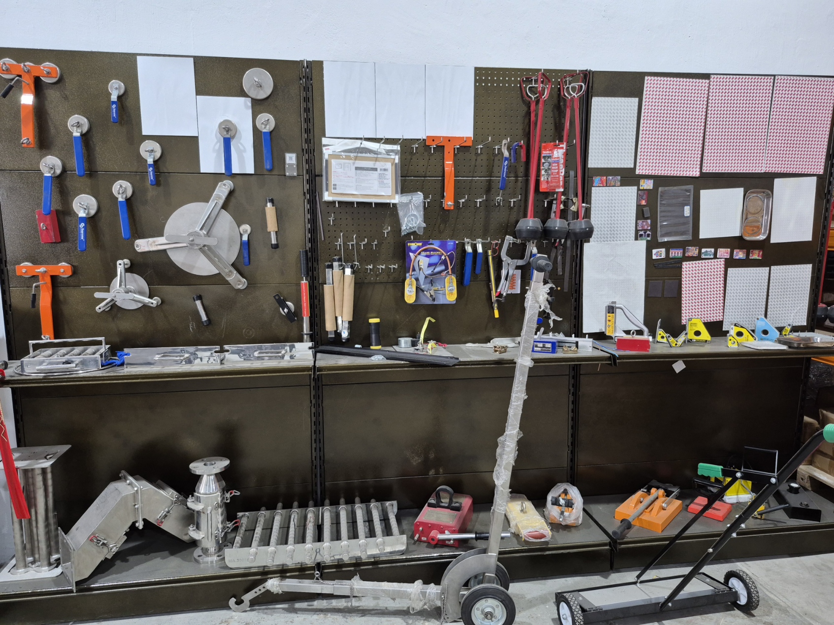 Over 500 products, 450 models in stock, over 2,000,000 total stocked inventory. Arguably, the largest warehouse and specialty store in Asia for magnets. We have Tesla meters, carbon fiber digital verniers, digital balances, 25 Ton hydraulic load test machines, magnetic visualization films, and lots of steel plates for simulation and lab-level research support.
