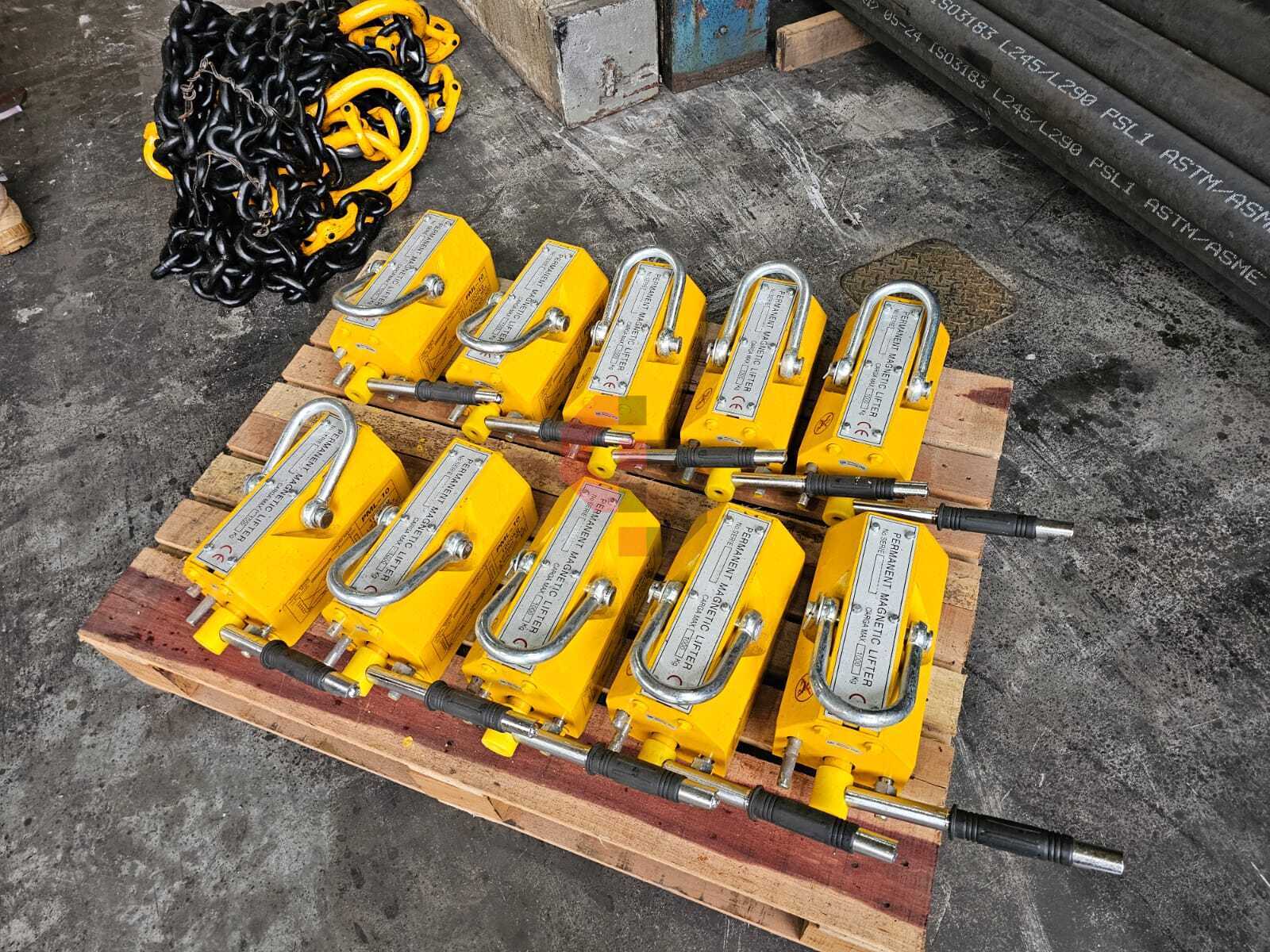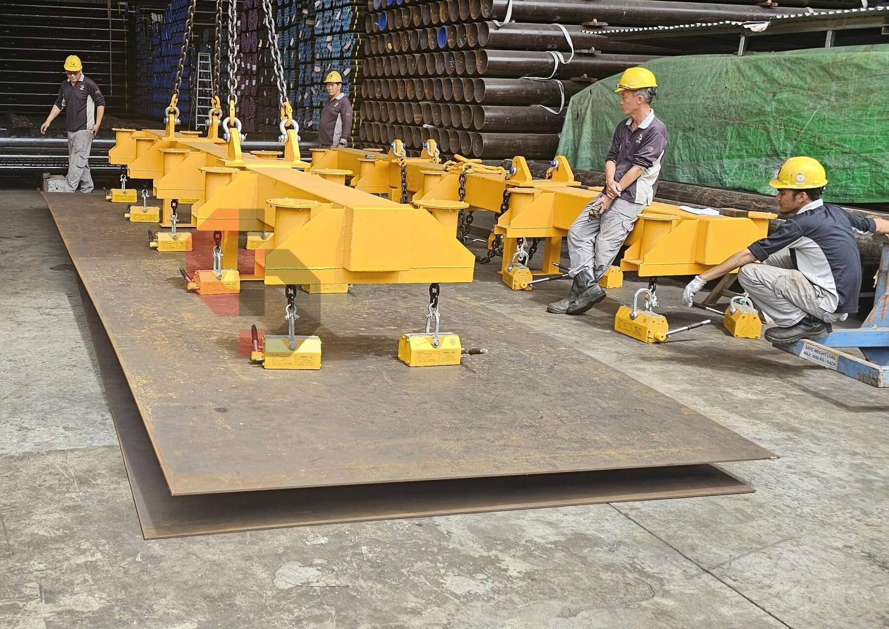 Using multiple permanent magnets to lift large steel plates is inefficient — the flux can't be controlled, activation/deactivation needs repeated manual switching, and thin sheets stick together with no easy way to separate them. Stacking plates also requires extra manpower to detach.