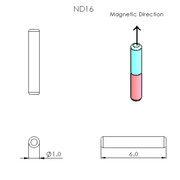 N52 Neodymium magnet cylinder : 1mm OD x 6mm H