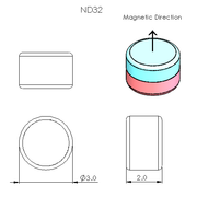 N52 Neodymium magnet disc : 3mm OD x 2mm H