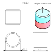 N52 Neodymium magnet cylinder : 3mm OD x 3mm H