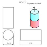 N52 Neodymium magnet cylinder : 6mm OD x 12mm H