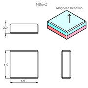 N52 Neodymium magnet block : 6mm L x 6mm W x 2mm H