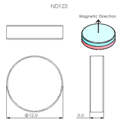 N52 Neodymium magnet disc : 12mm OD x 3mm H