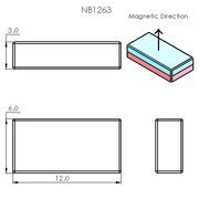 N52 Neodymium magnet block : 12mm L x 6mm W x 3mm H