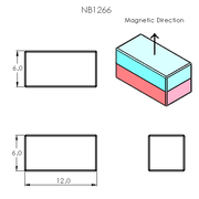 N52 Neodymium magnet block : 12mm L x 6mm W x 6mm H