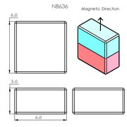 N52 Neodymium magnet block : 6mm L x 3mm W x 6mm H