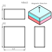N52 Neodymium magnet block : 6mm L x 6mm W x 3mm H